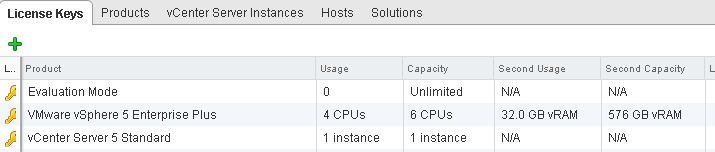 Update: vCloud Suite keys did NOT eliminate the "Second Capacity" columns; vRAM is still being counted, and the old v5.0 entitlement measures are being displayed.