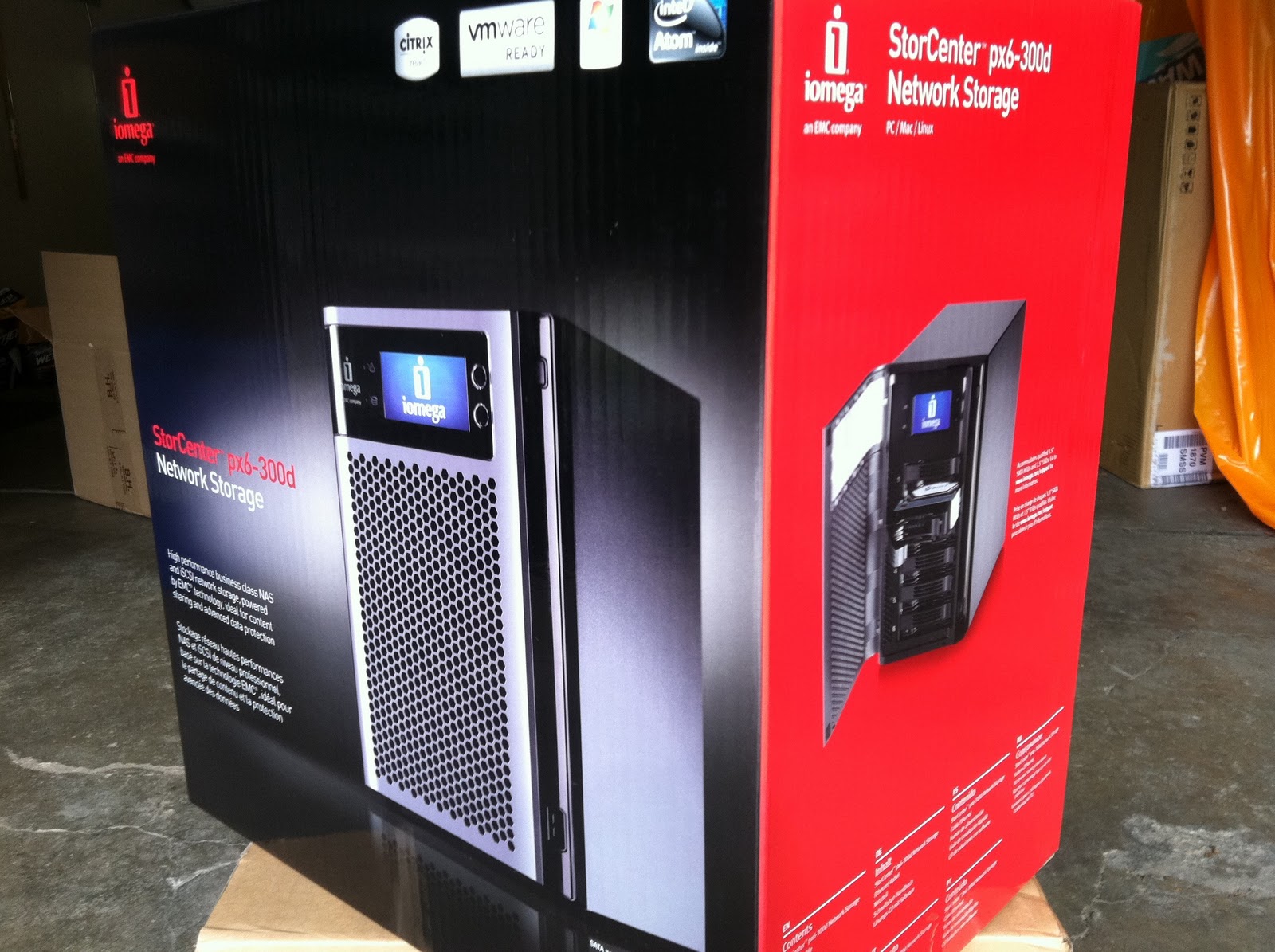 Under the hood, it contains a dual-core Intel Atom processor (running at 1.8GHz) with 2GB RAM, sports a pair of Gigabit Ethernet ports, three USB ports (1 x USB 3.0, 2 x USB 2.0), and runs a customized version of Linux called "EMC LifeLine." The unit can be purchased with various pre-installed drive configurations (6, 12 & 18TB raw capacity); along with the px4 models, iomega has also (finally!) offered a "diskless" configuration.